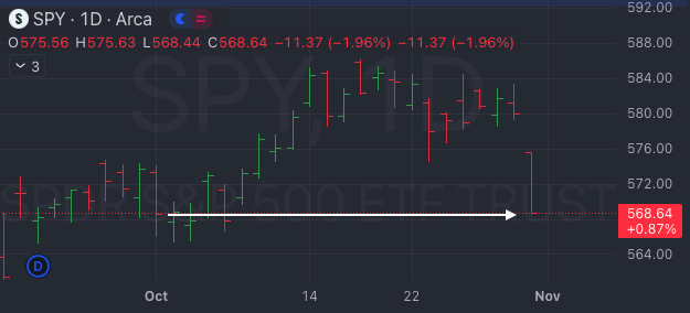 After 14 days of $SPY and $ES_F chopping around 580 / 5850, the magnet line decided to repel price right back to the October 1st close.