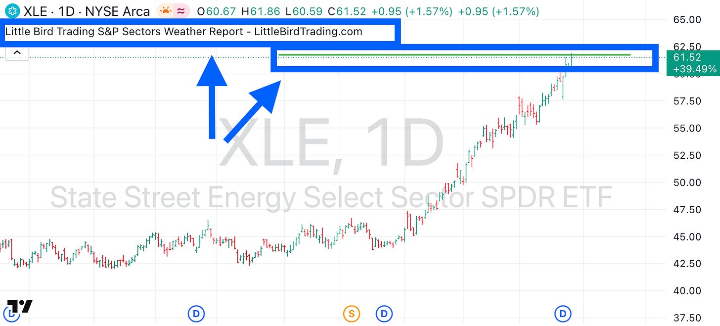This update covers the free S&P Sectors Weather Report and both reports below the paywall line: the Futures Market Weather Report and the Stock Market Weather Report