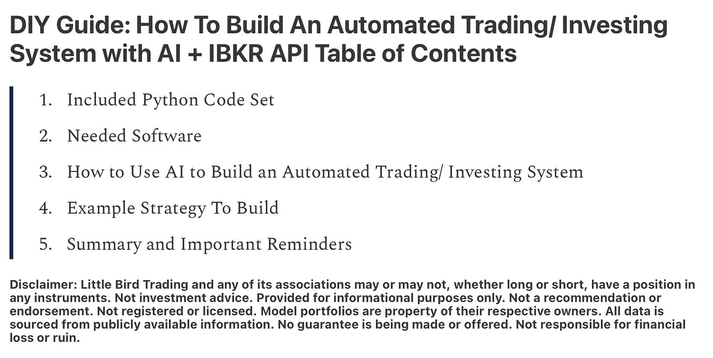 DIY Guide: How To Build An Automated Trading/ Investing System with AI and the IBKR API — Includes python code, screenshots, and steps for building your first automated trading/ investing program.