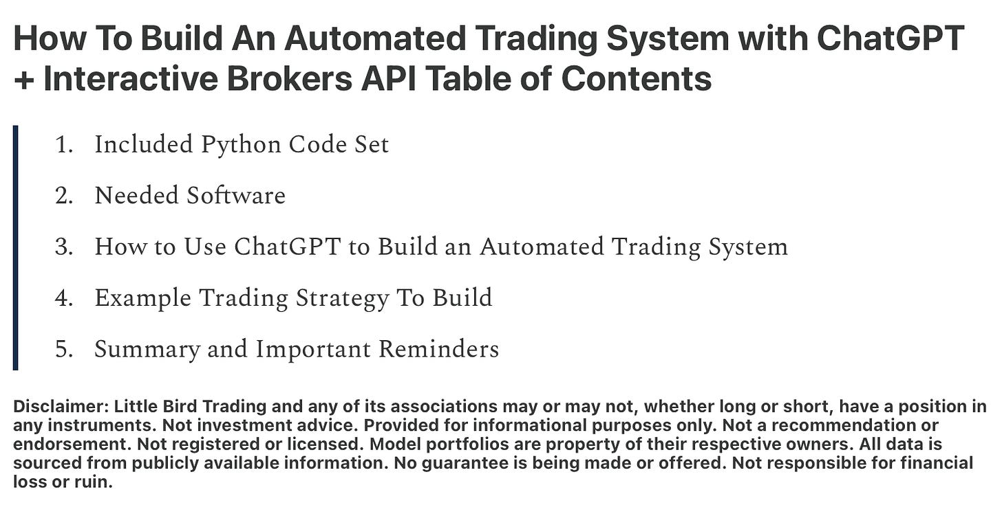 How To Build An Automated Trading System with ChatGPT and the Interactive Brokers (IBKR) API — Includes python code, screenshots, and steps for building your first automated trading program.